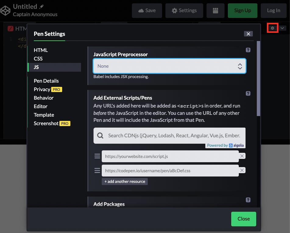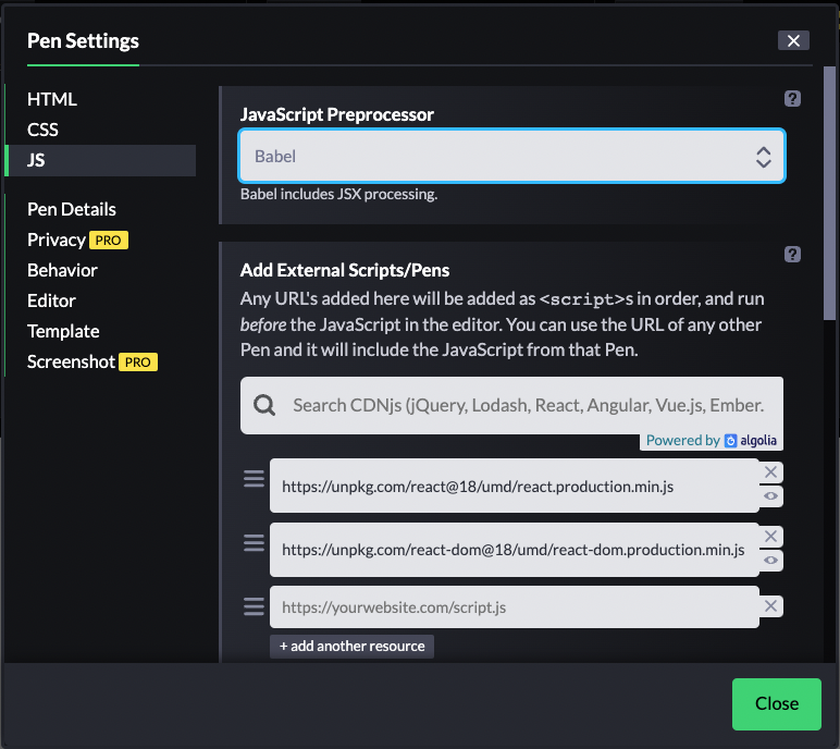 설정을 눌러 CDN 을 추가해주자.