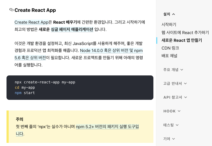 create-react-app 문서: https://ko.reactjs.org/docs/create-a-new-react-app.html#create-react-app