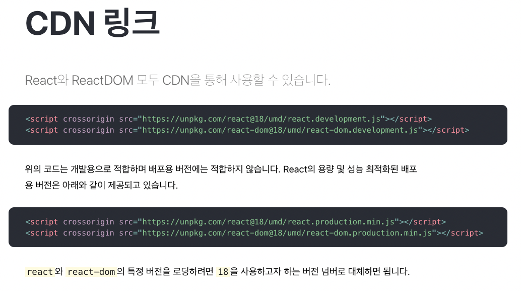 CDN 링크: https://ko.reactjs.org/docs/cdn-links.html