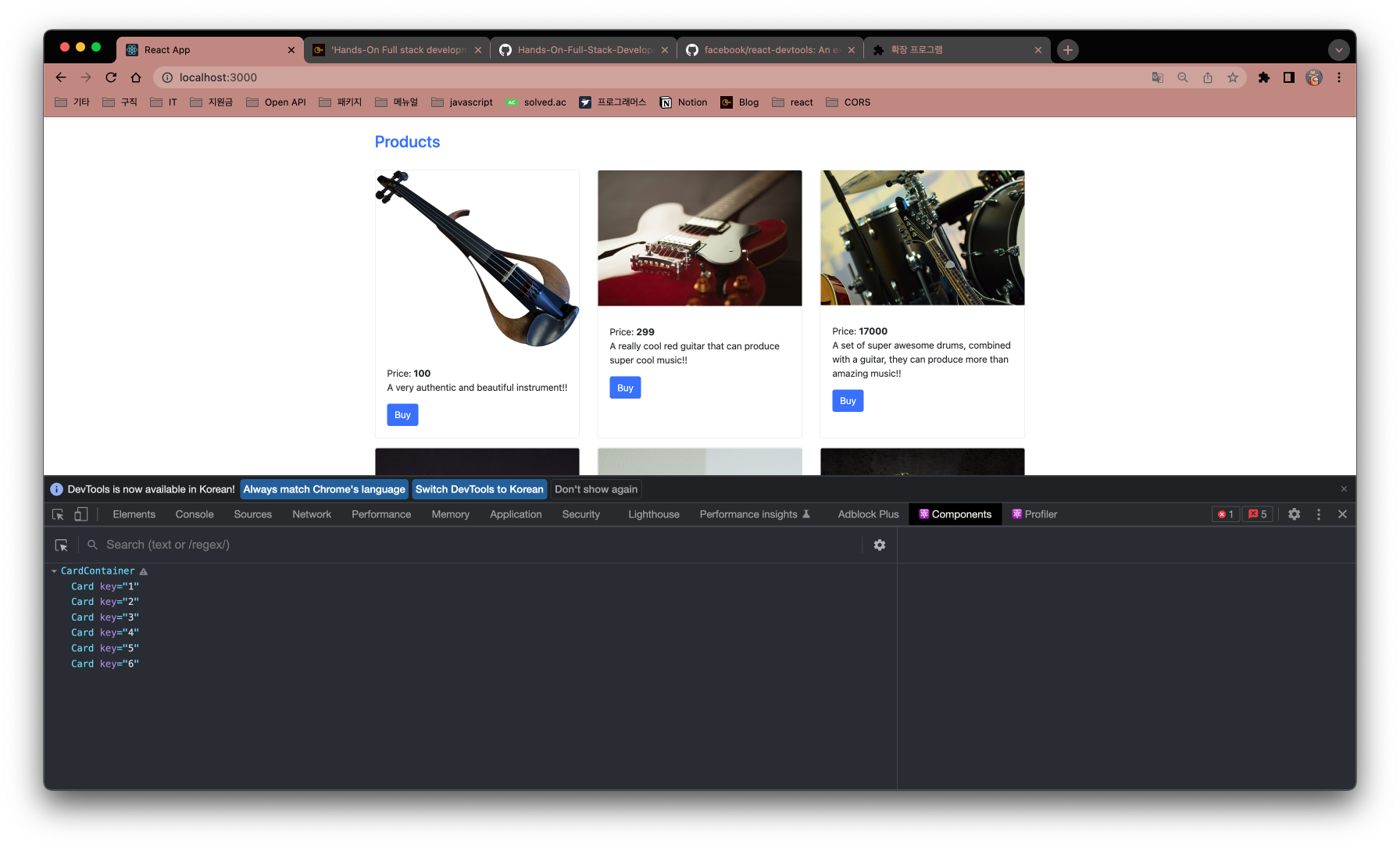 CardContainer 컴포넌트 코드를 살펴보기 전에 CardContainer 에서 Card 로 상품정보를 어떻게 넘기는지 알아보자.