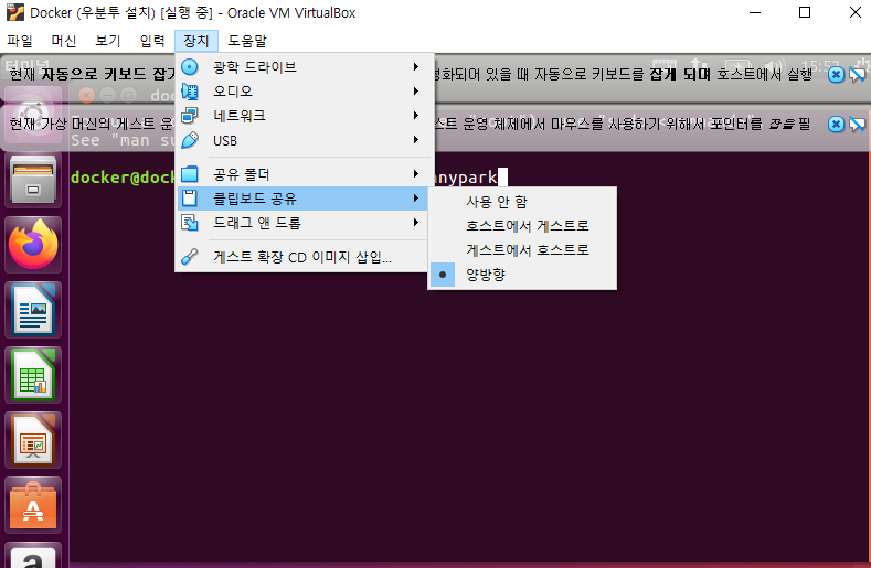 버추얼박스에서 복사-붙여넣기를 사용하기 위해