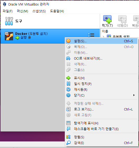 우분투를 재 실행해준 후 (우분투를 설치한 이미지는 빼줍니다.)