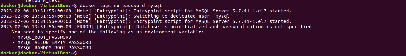 먼저 컨테이너를 생성해 간단한 로그를 남겨 봅시다. 다음 명령은 mysql 5.7 버전의 컨테이너를 생성합니다.
