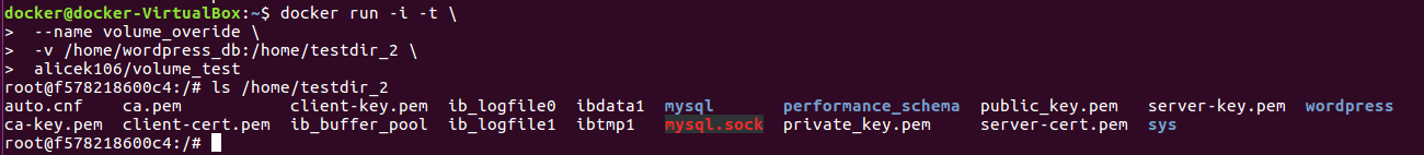 - 이미지에 내장된 커맨드는 docker run 이나 create 명령어의 맨 끝에 입력해서 컨테이너를 생성할 때 덮어쓸 수 있습니다.