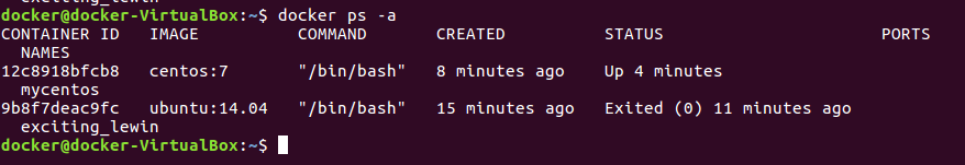 모든 컨테이너를 출력하려면 -a 옵션을 줍니다.