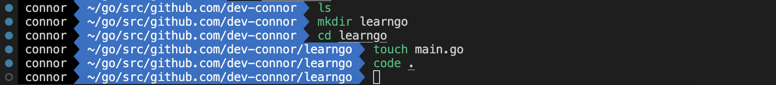 이제 learngo 라는 폴더를 만들고 안에 main.go 파일을 생성 후 VSCode 로 열어보자.