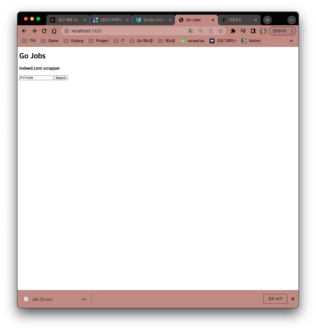 이번 코스에서 kr.indeed.com 의 데이터를 추출하는 웹 스크래퍼를 만들어 볼 것이다.