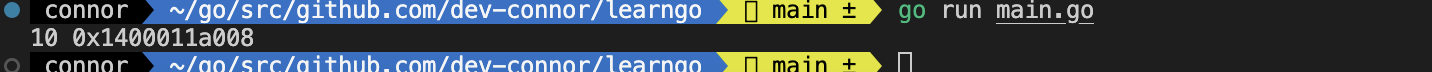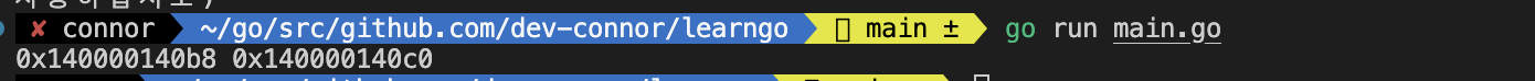fmt.Println(&a, &b)
