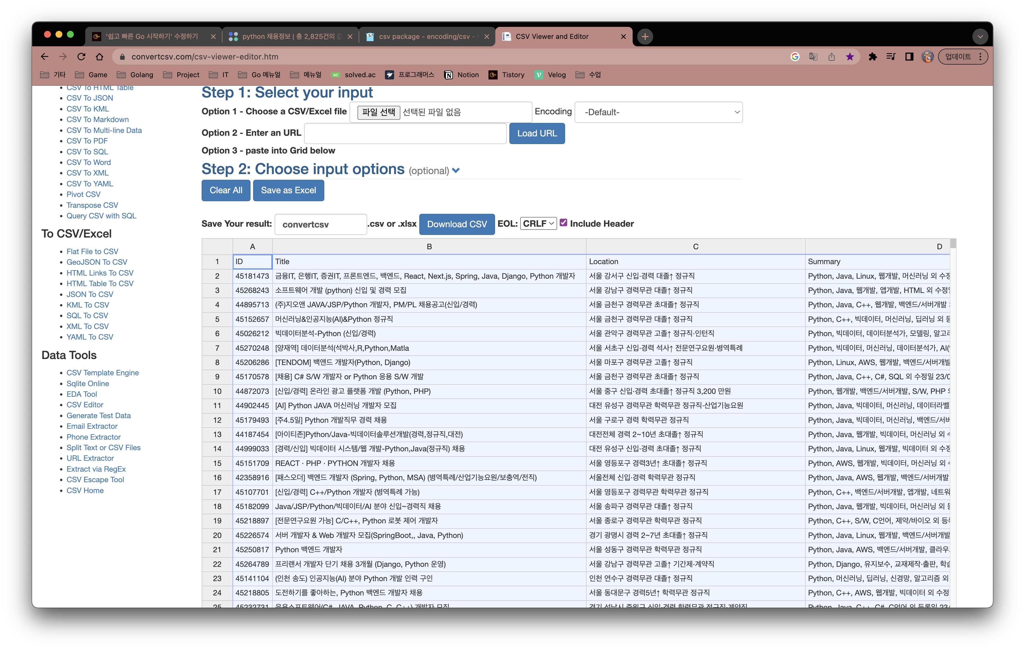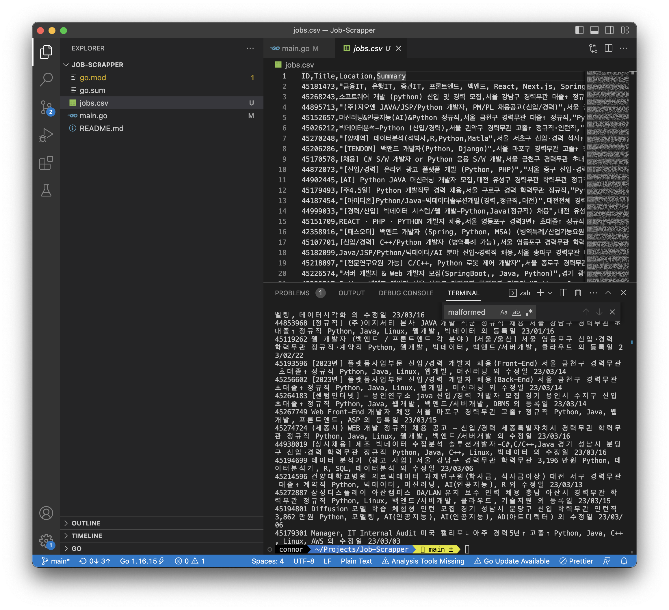엄청나게 빠른 속도로 jobs.csv 파일이 생성되는 것을 볼 수 있다.