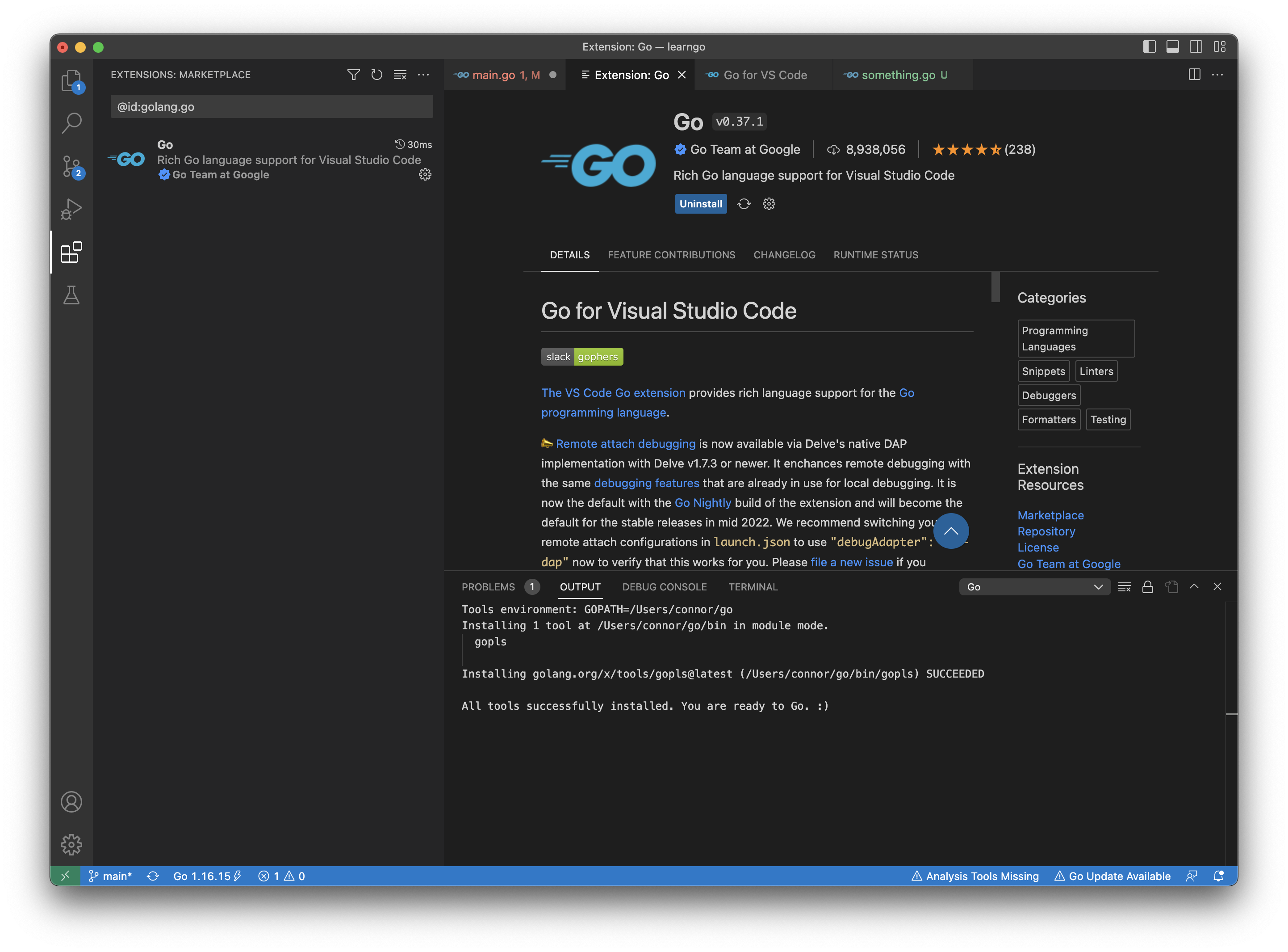 또한, VSCode 에 Go Extension 을 설치해 배워보자.