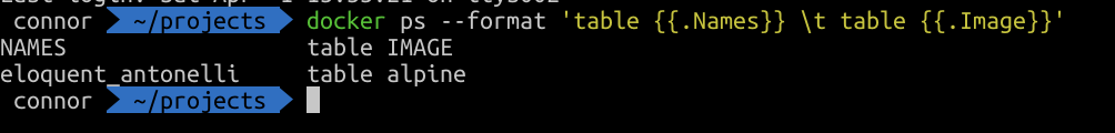 docker ps --format 'table {{.Names}} \t table {{.Image}}'