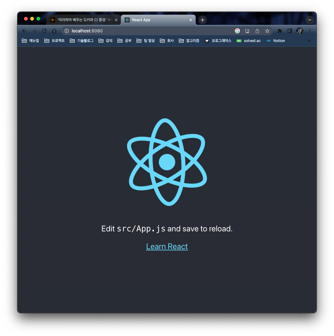 - 리액트 애플리케이션을 도커환경에서 실행하기 위해