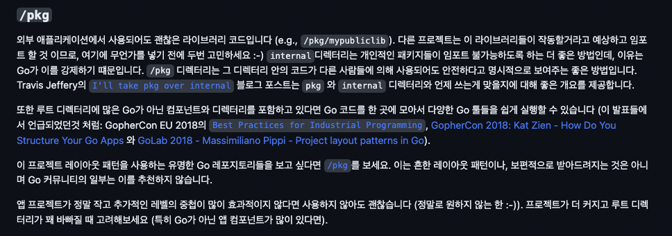 프로젝트 레이아웃: https://github.com/golang-standards/project-layout/blob/master/README_ko.md