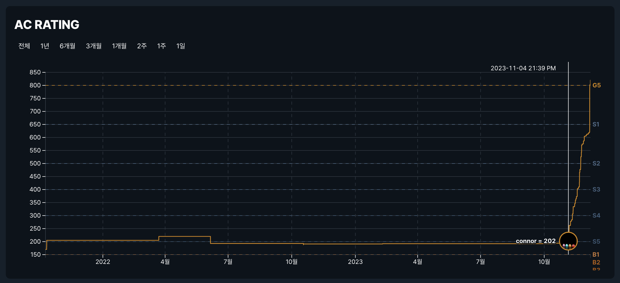 실버5 던 레이팅을 근 한달만에 골드를 달았다.
