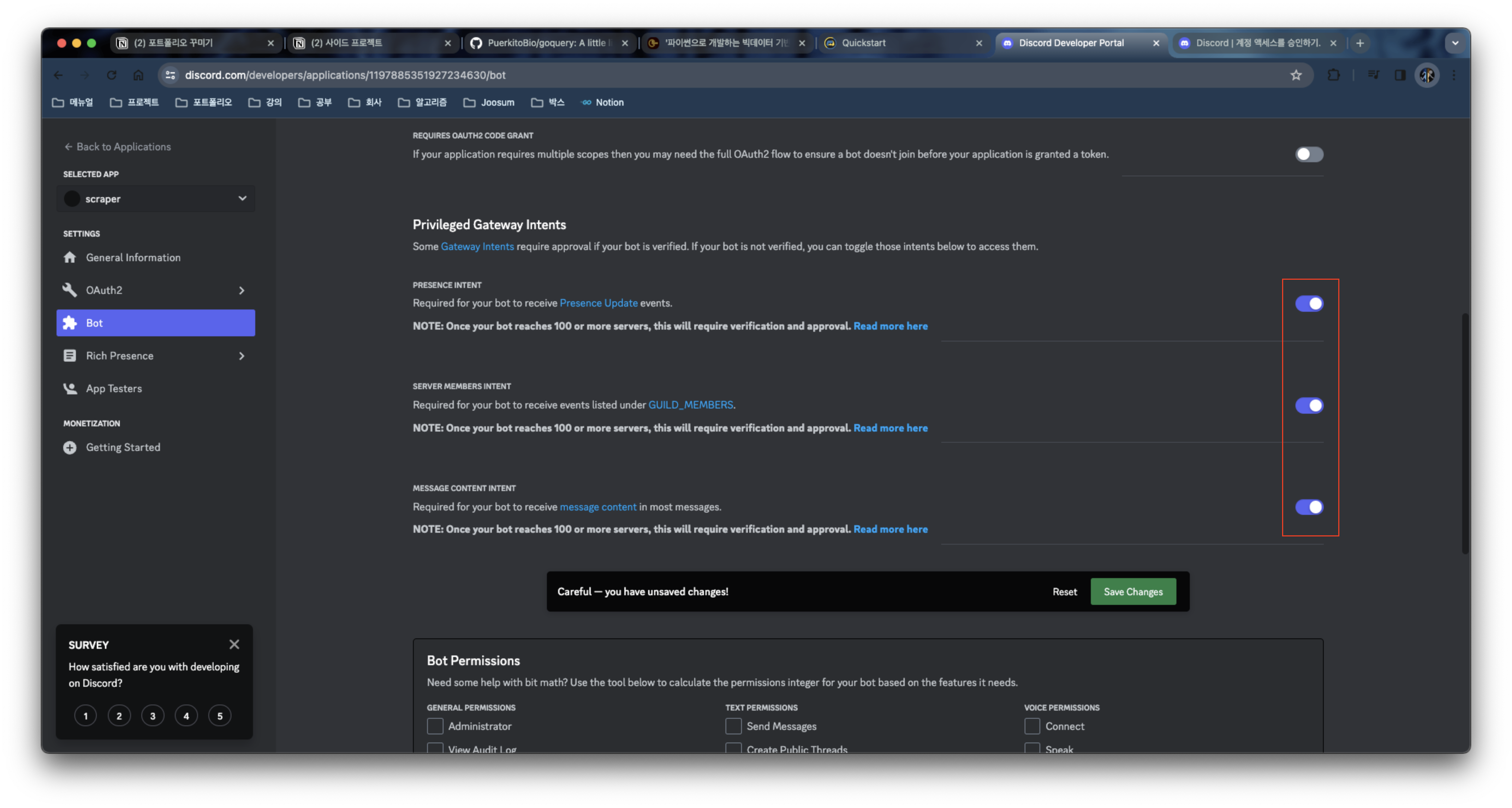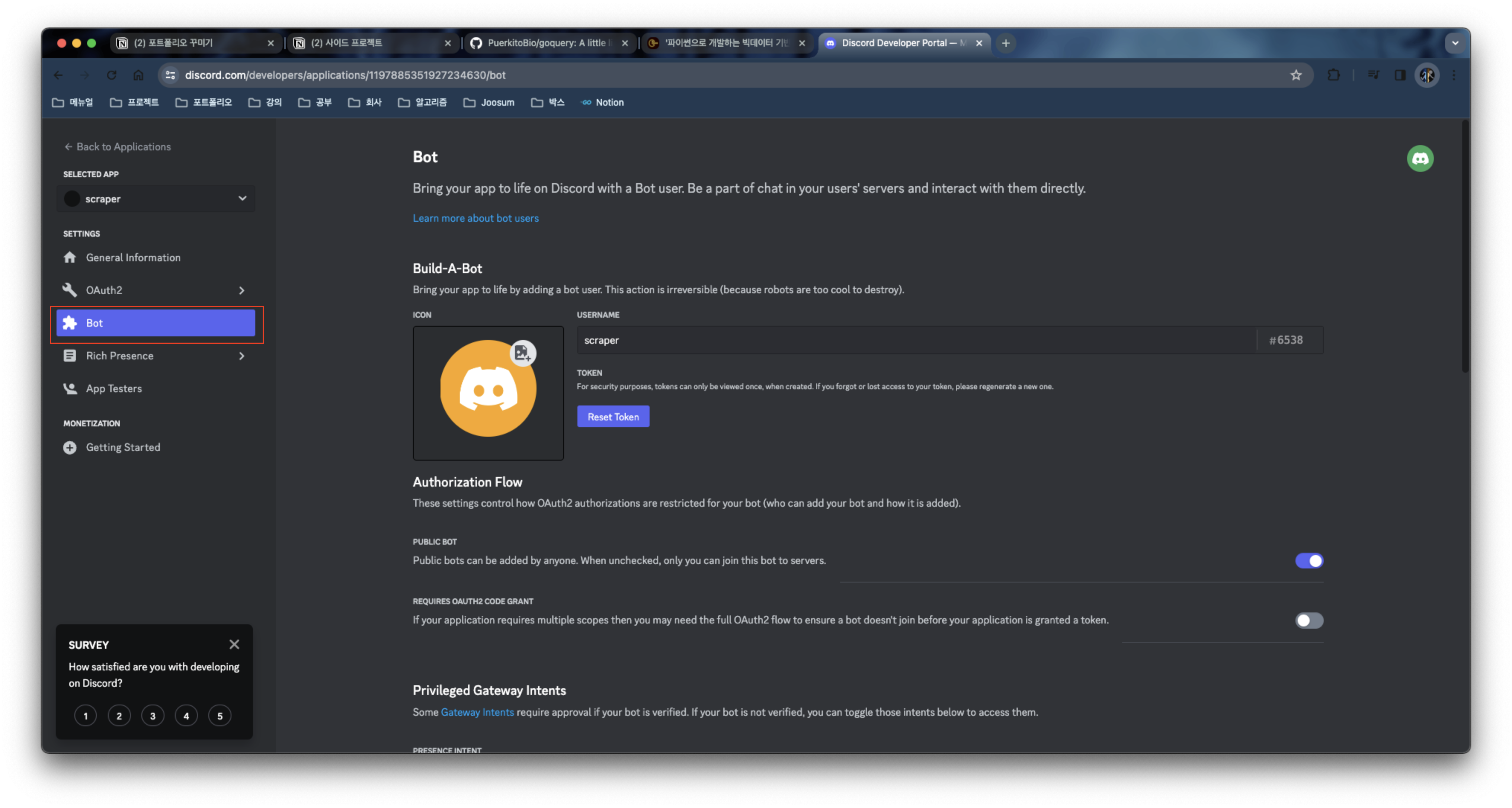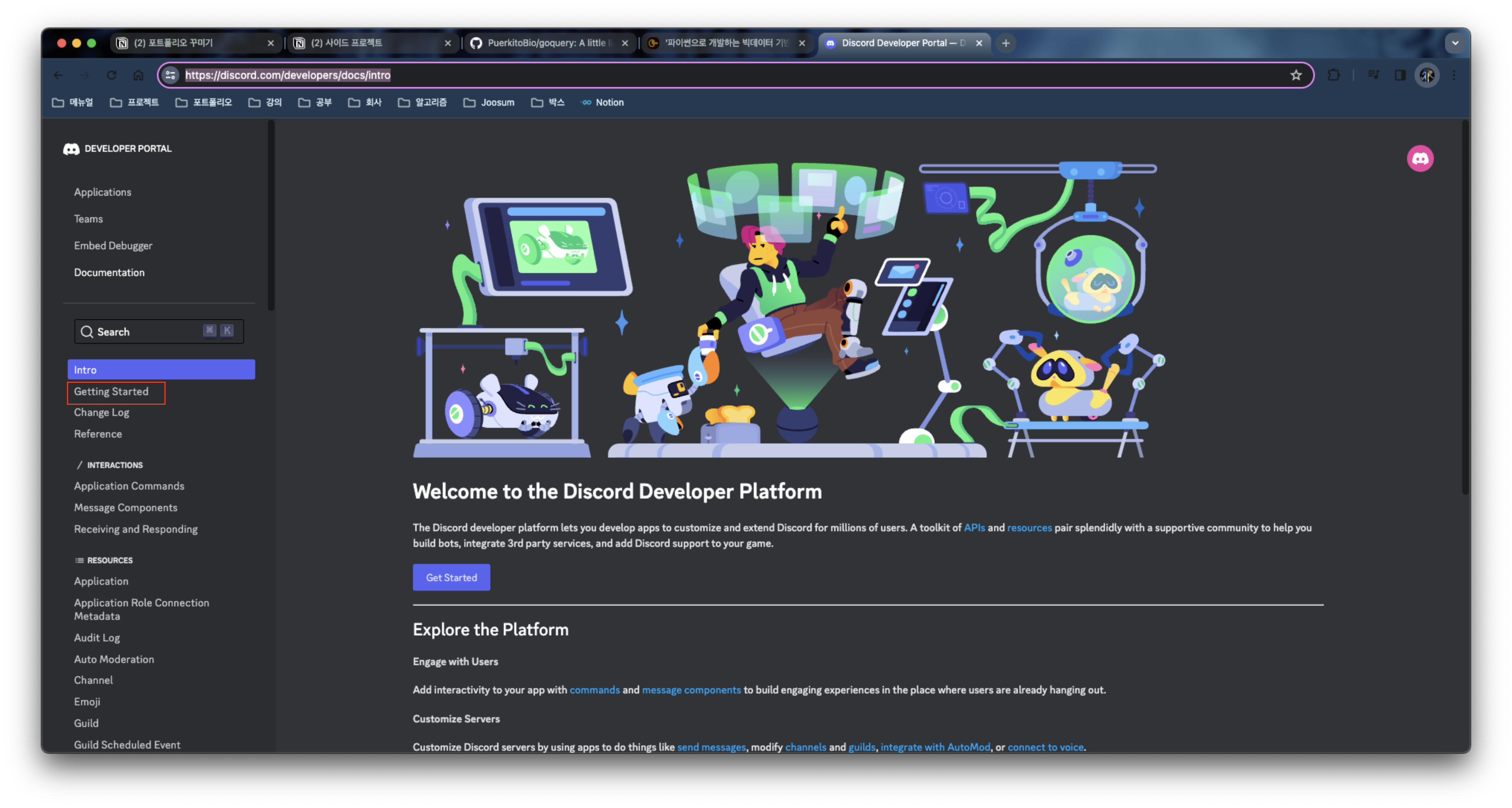 디스코드 개발자 사이트: https://discord.com/developers/docs/intro