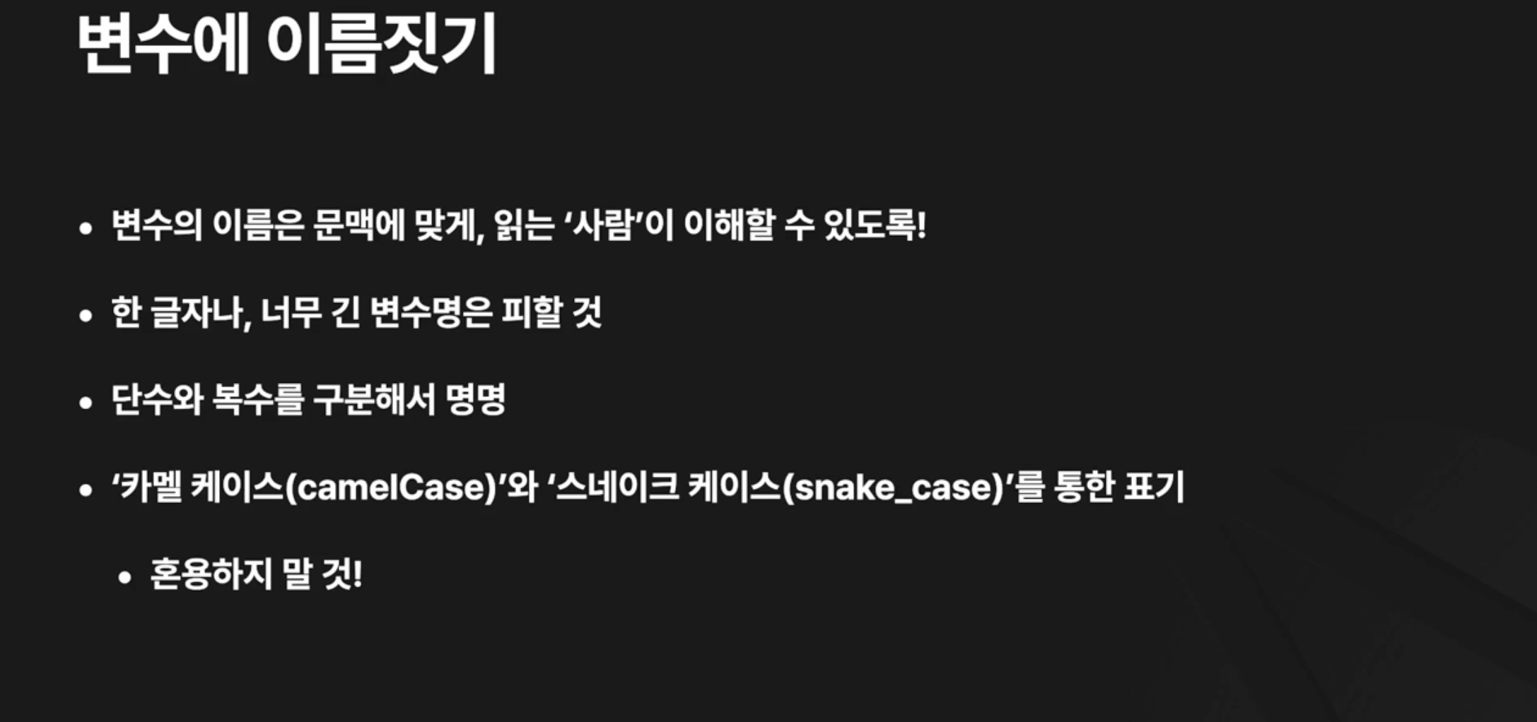 파이썬은 기본적으로 스네이크 케이스를 사용한다.