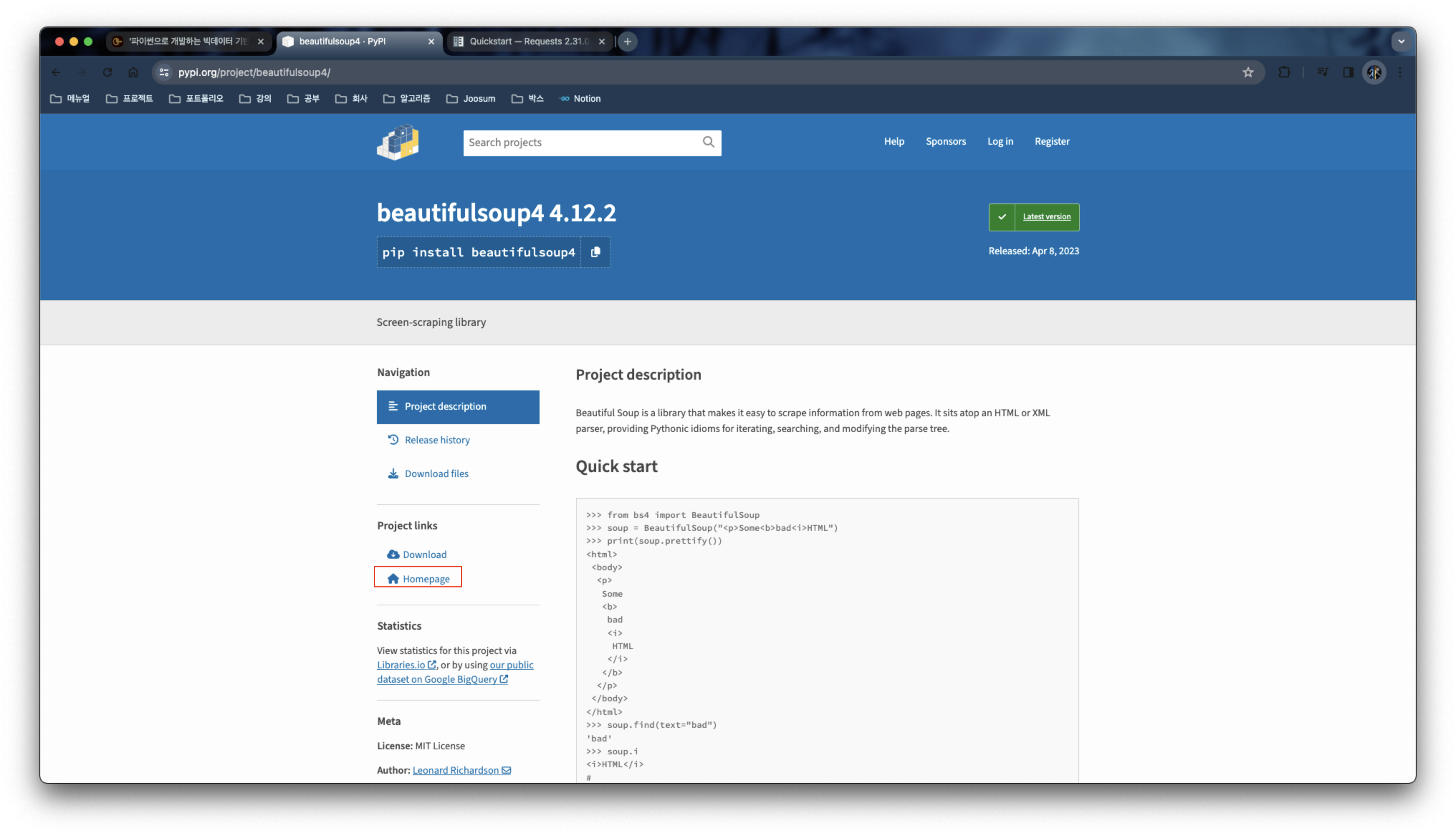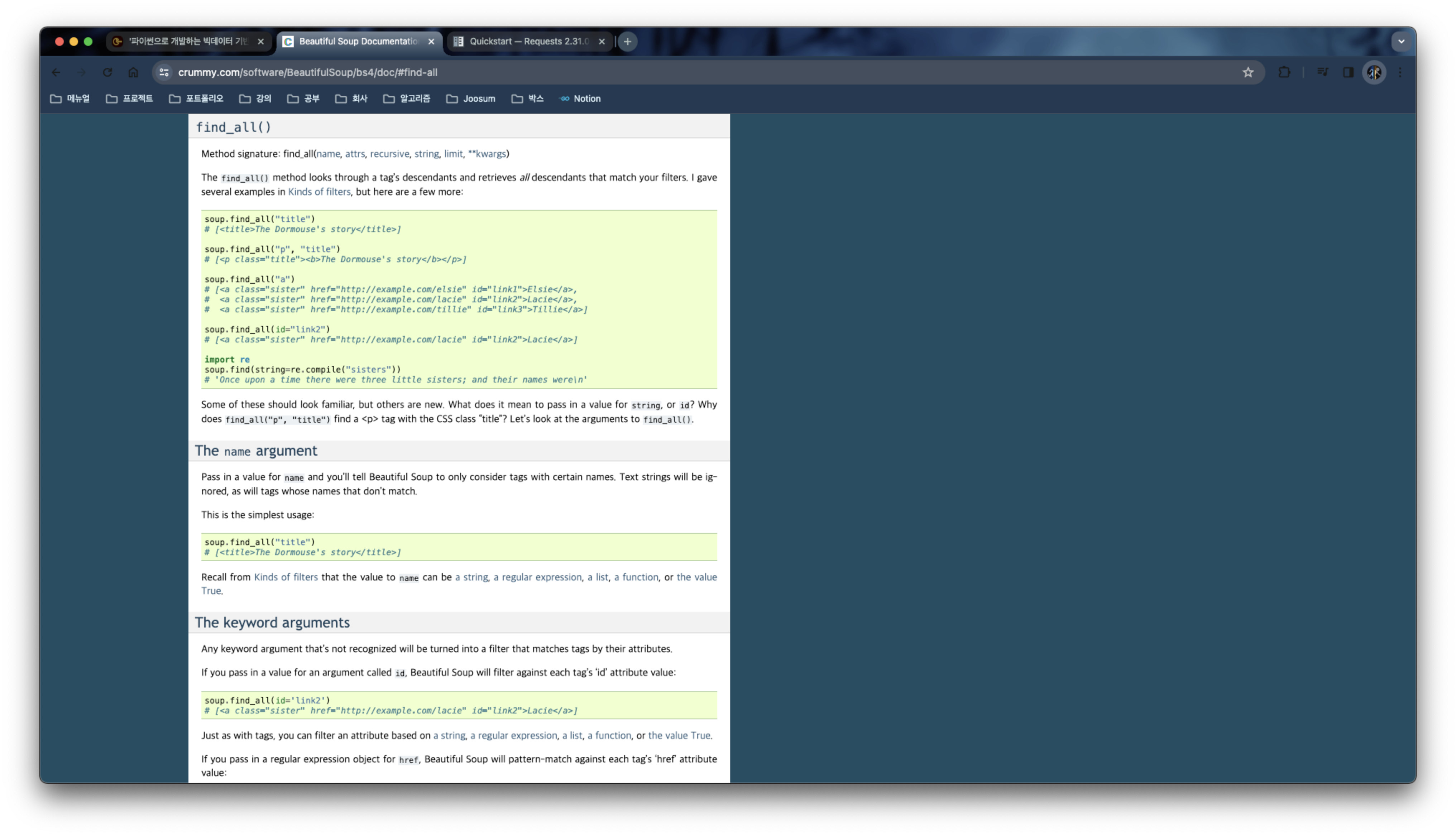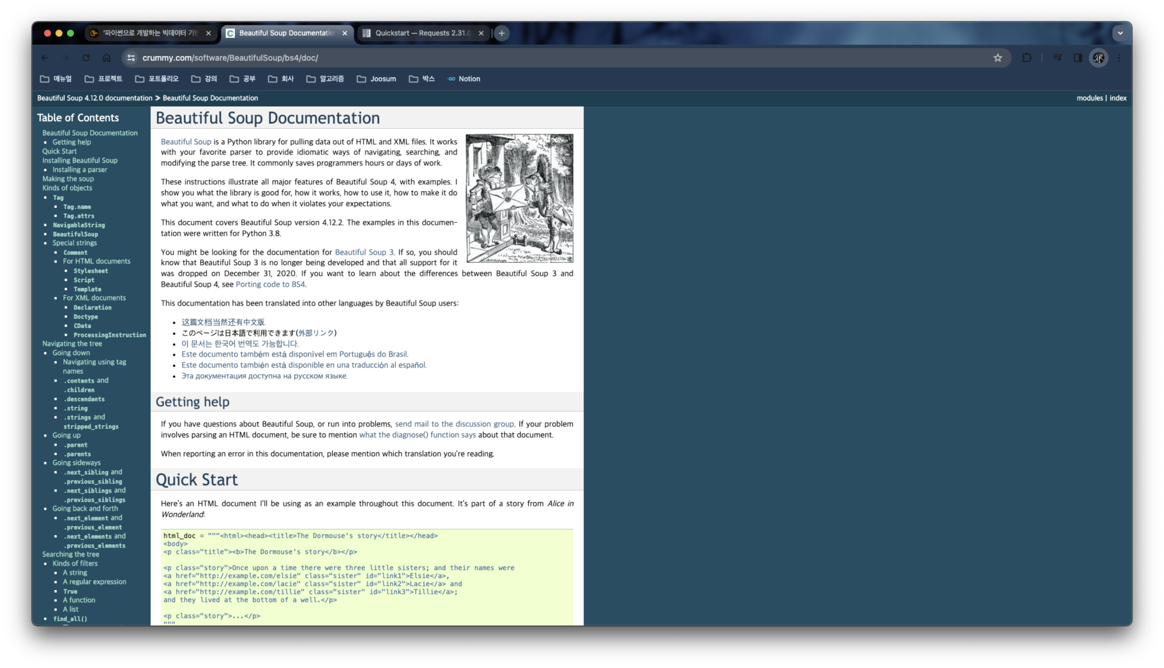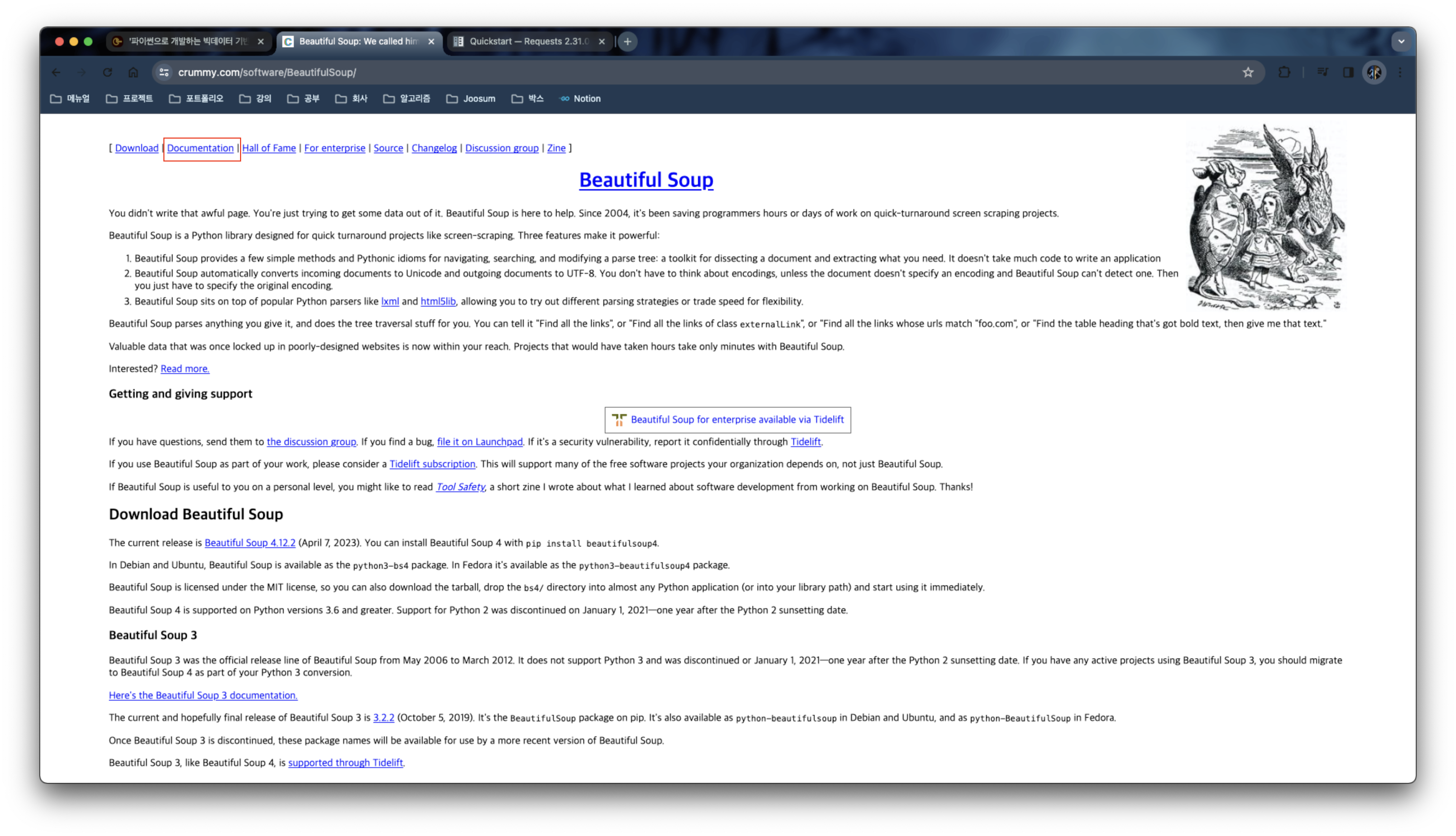 공식문서: https://www.crummy.com/software/BeautifulSoup/bs4/doc/