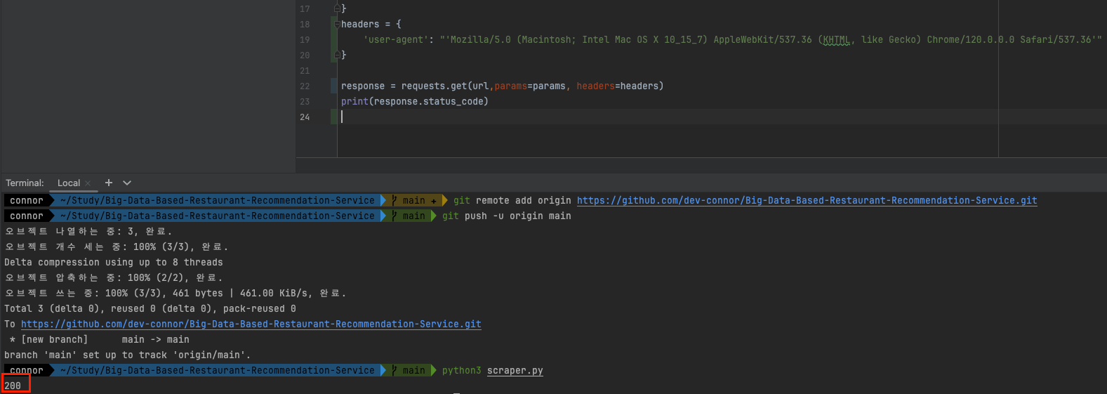 웹브라우저가 보낸 것 처럼 유저 agent 값을 넣어야 한다.