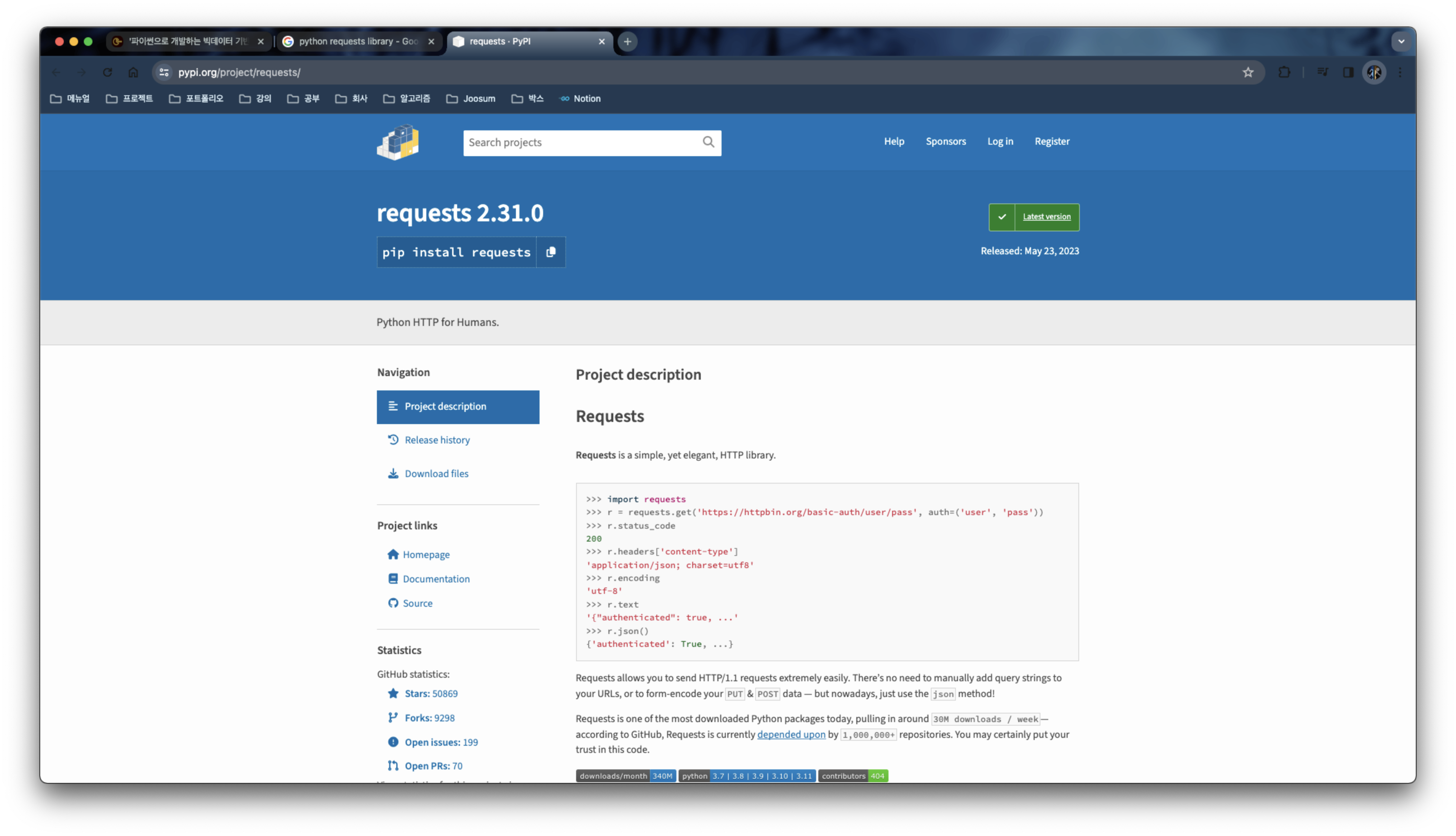 pip 는 파이썬을 설치할 때 함께 설치된다.