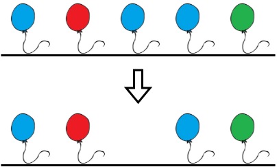 There are no longer two consecutive balloons of the same color. Total time = 3.