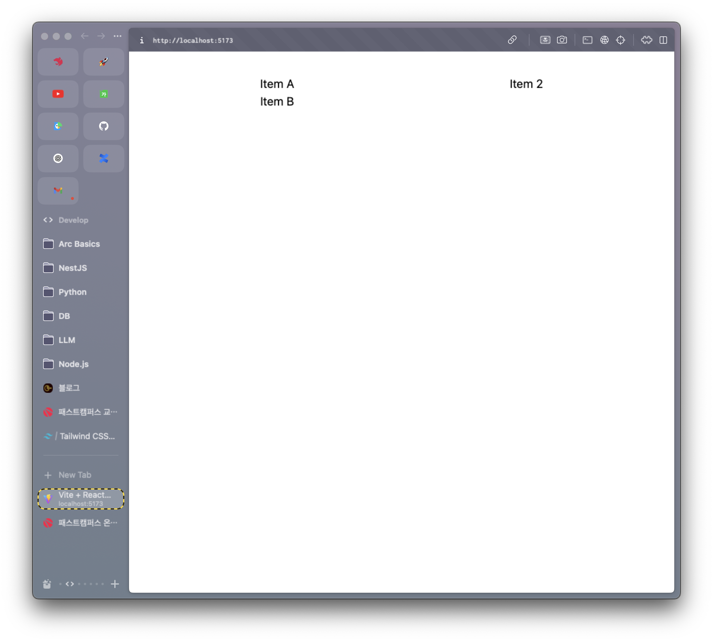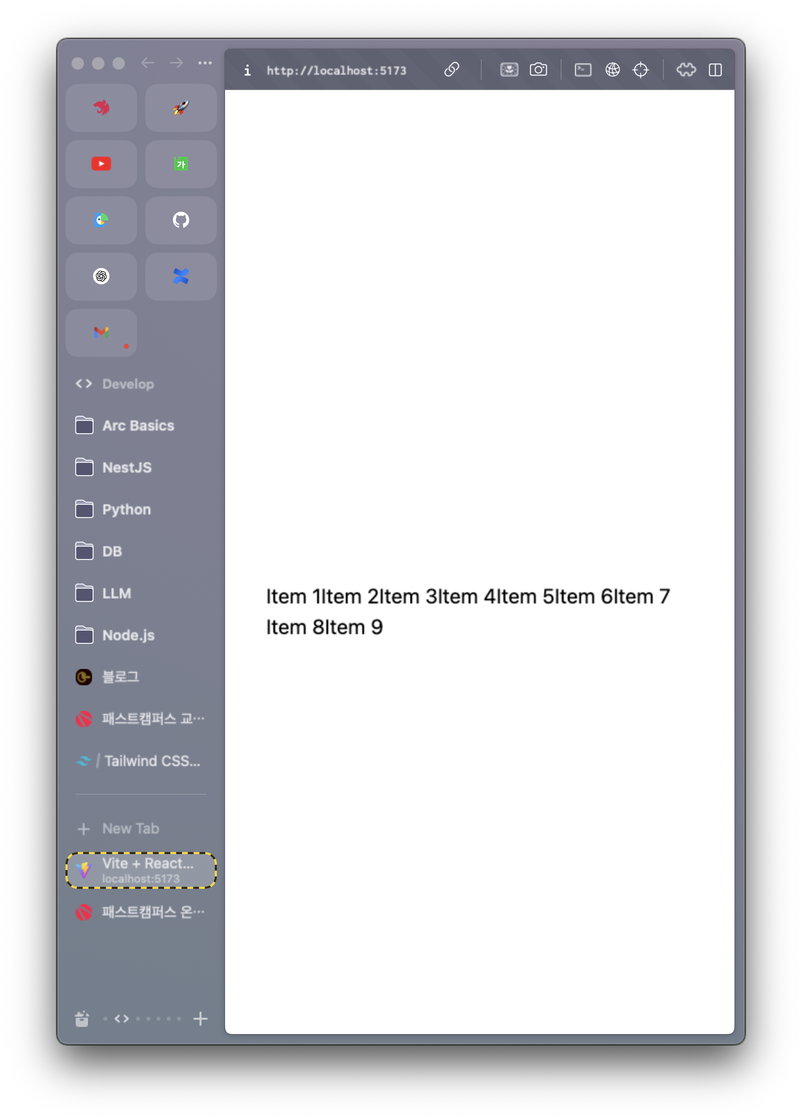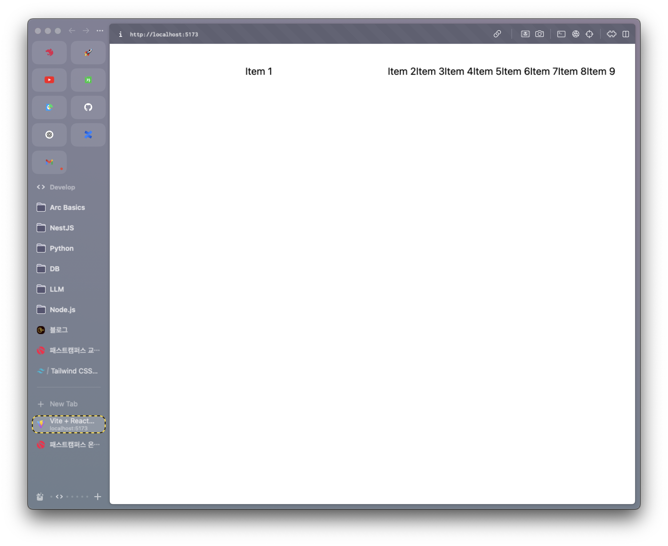 - items-start: 아이템을 시작 쪽으로 정렬합니다.