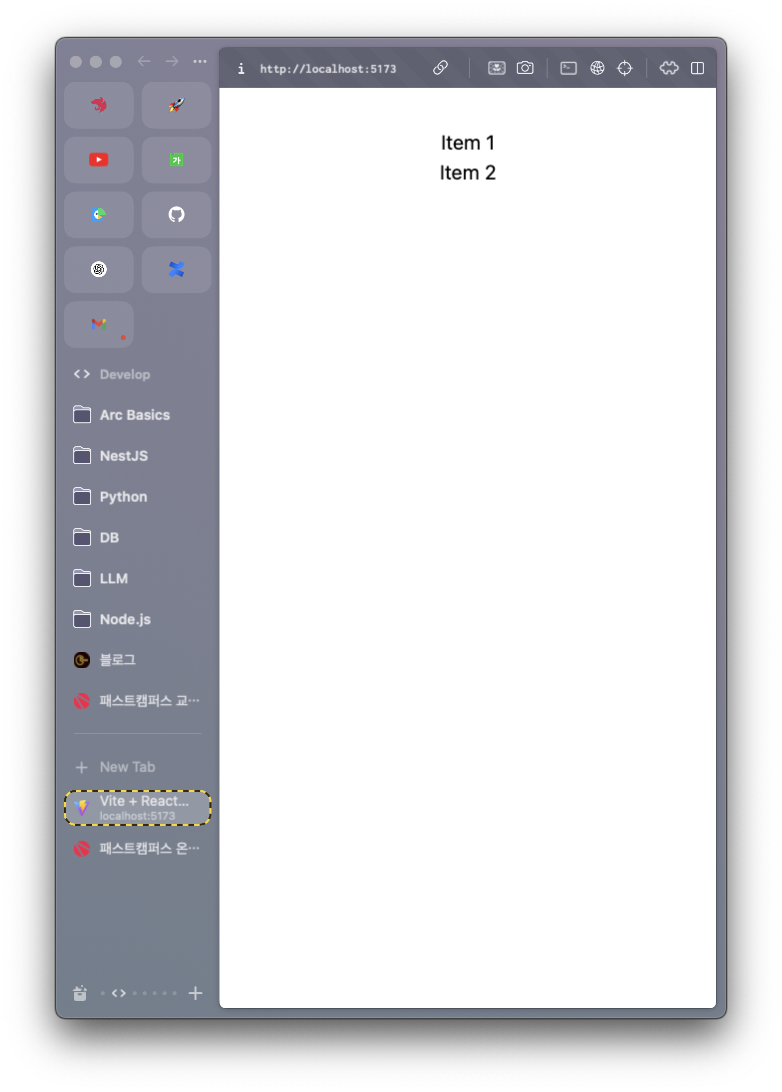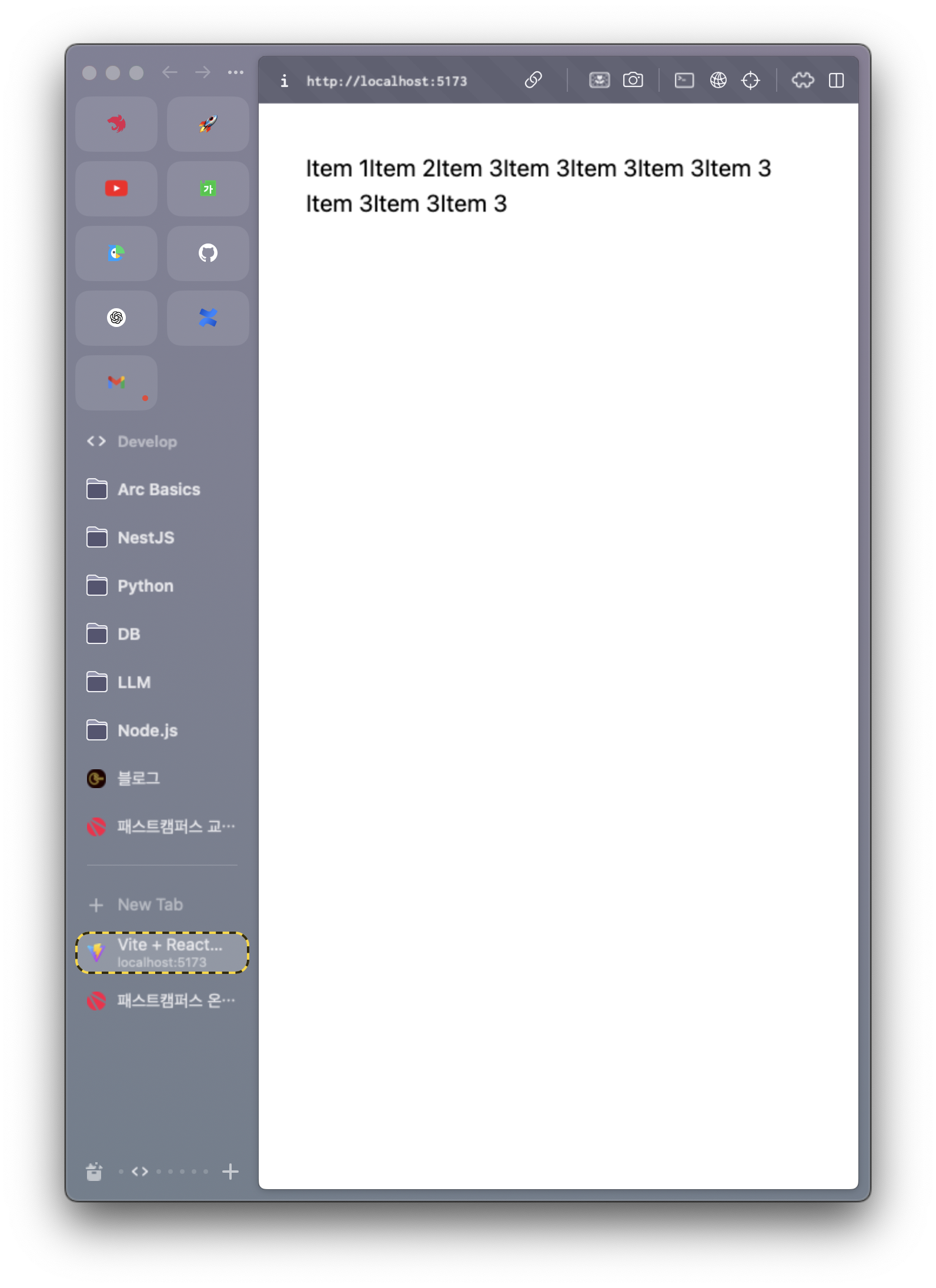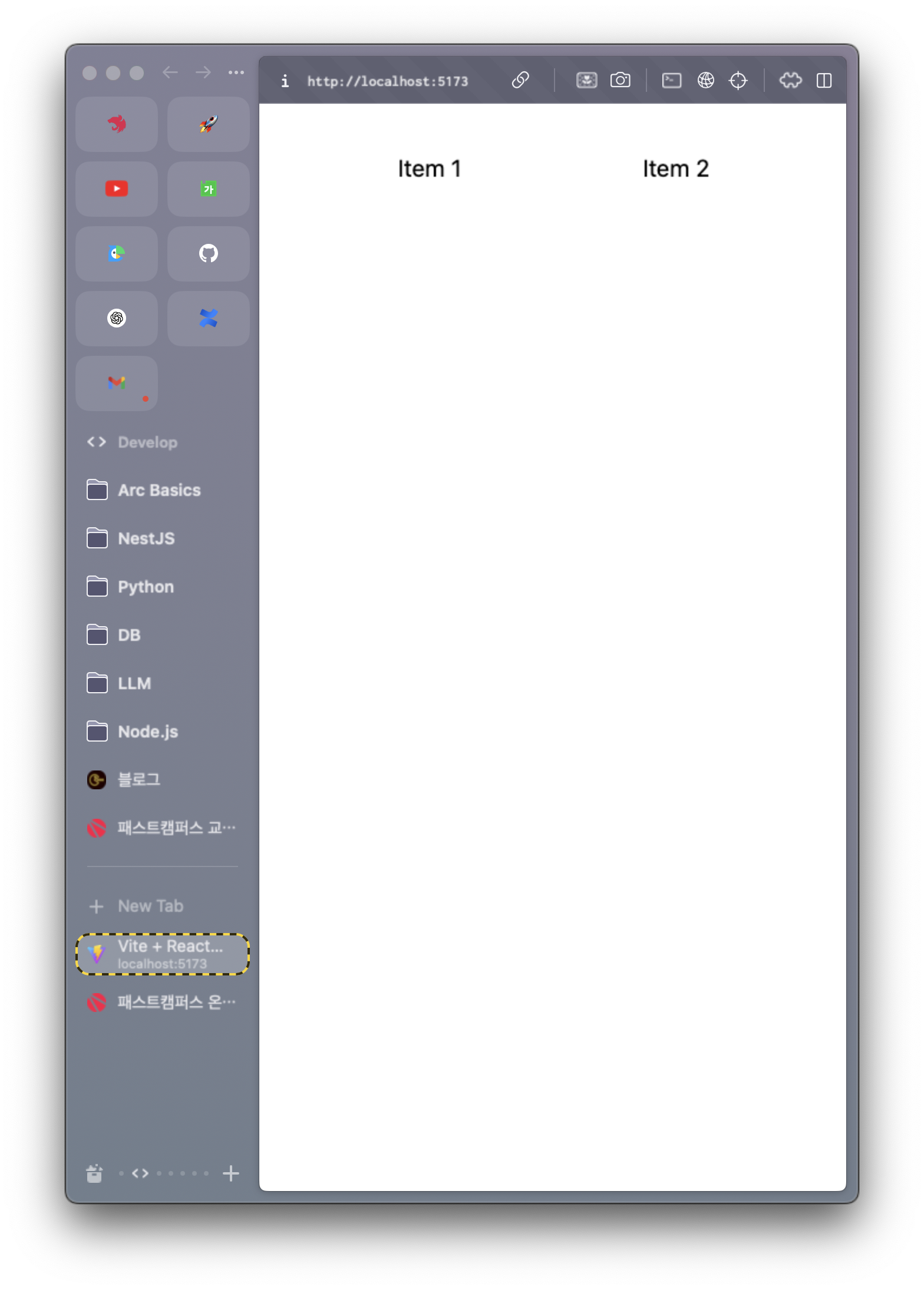 - items-start: 아이템을 시작 쪽으로 정렬합니다.