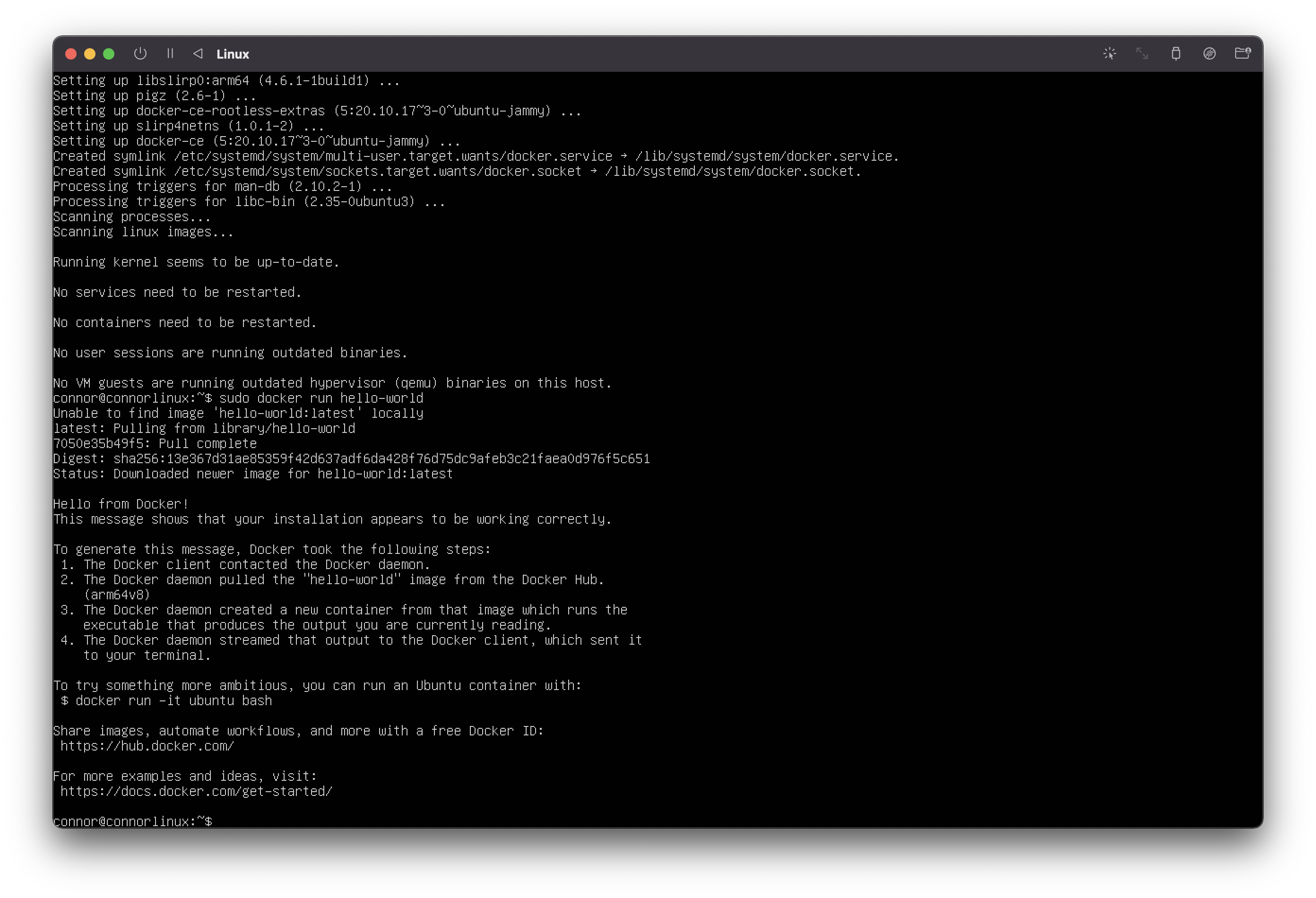sudo docker run hello-world