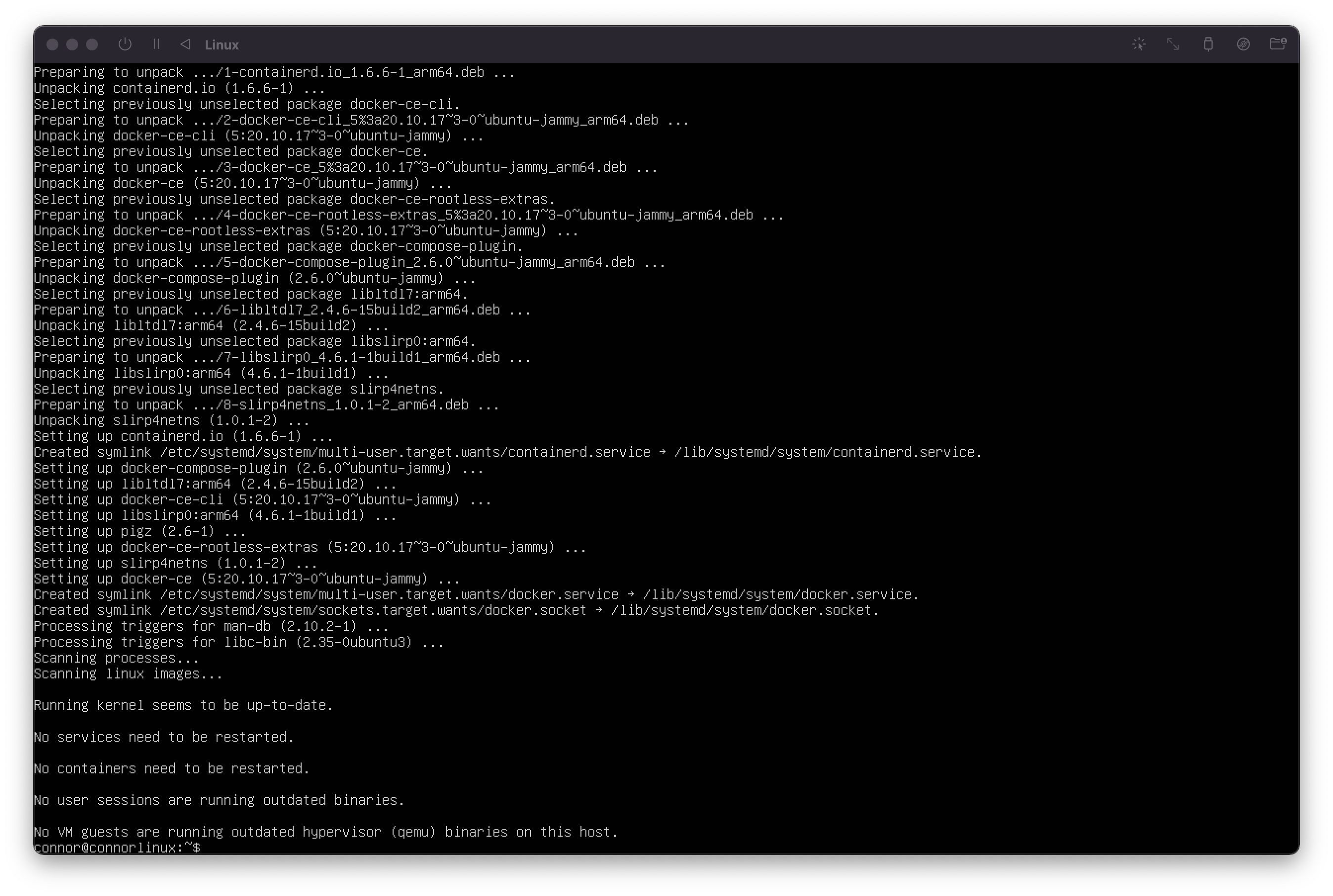 sudo apt-get install docker-ce docker-ce-cli containerd.io docker-compose-plugin