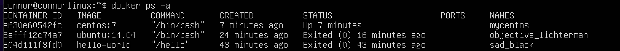 정지된 컨테이너를 포함한 모든 컨테이너를 출력하려면 -a 옵션을 추가합니다.